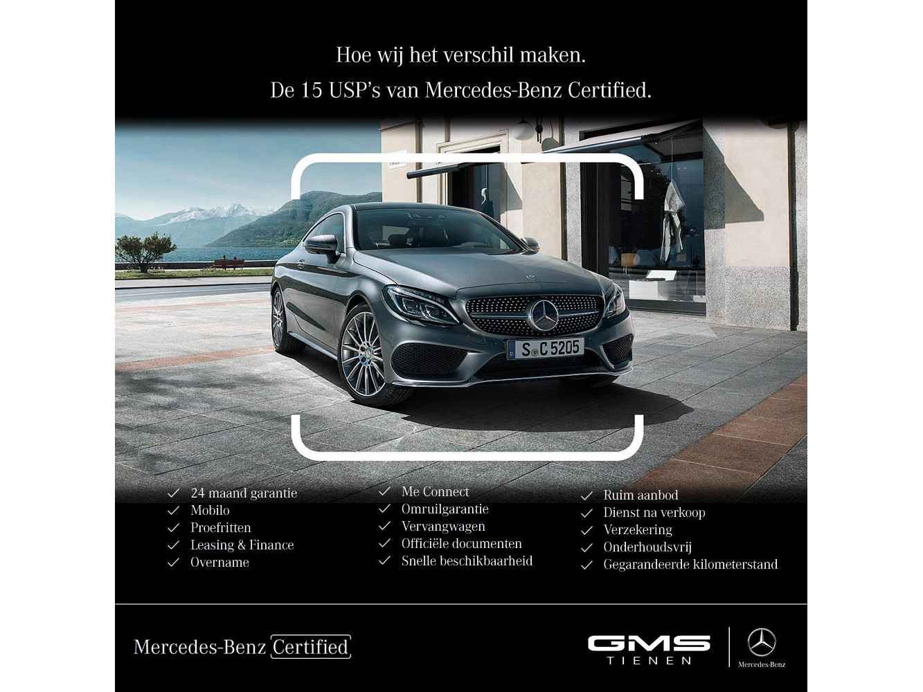 MERCEDES-BENZ GARAGE GMS TE TIENEN IS OFFICEEL VERDELER VOOR MERCEDES-BENZ ! Bij GMS Tienen presenteren we tweedehandsvoertuigen met de grootste zorg geïnspecteerd en voldoen aan de hoogste kwaliteitsnormen. - 24 Maanden Garantie op wagens jonger dan 6 jaar - Mobiliteitsgarantie - Financieringsmogelijkheden - Mogelijkheid aankoop Service contract - Garantieverlenging mogelijk - 126 controlepunten en carpass - Overname van uw oud voertuig - Een ruim aanbod - Dienst na verkoop Bekijk ons aanbod via deze link: Mercedes-Benz GMS Tienen is zeer makkelijk te bereiken via de E40 afrit Tienen Esperantolaan 16 3300 Tienen Telefoon: 016/78.15.50 Openingstijden Ma t/m Vr 9:00 - 18:00 zaterdag 9:00 - 17:00
